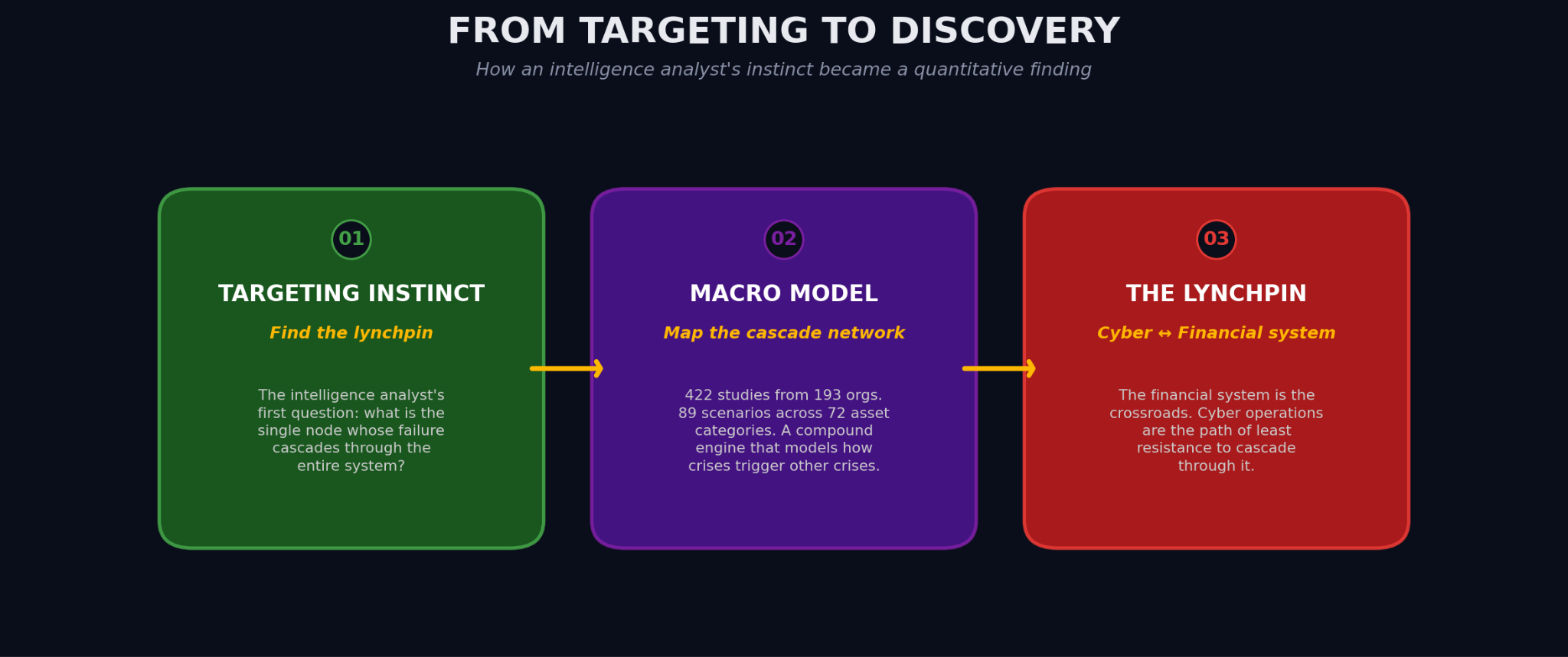 This is not a new thought in the abstract. FSB, BIS, and the ECB have all published on systemic cyber risk. But there’s a difference between “experts worry about it” and “a general-purpose macro stress model, not designed to study cyber risk, independently converges on cyber attacks against financial infrastructure as the highest-leverage cascade path.” The first is policy discussion. The second is structural.